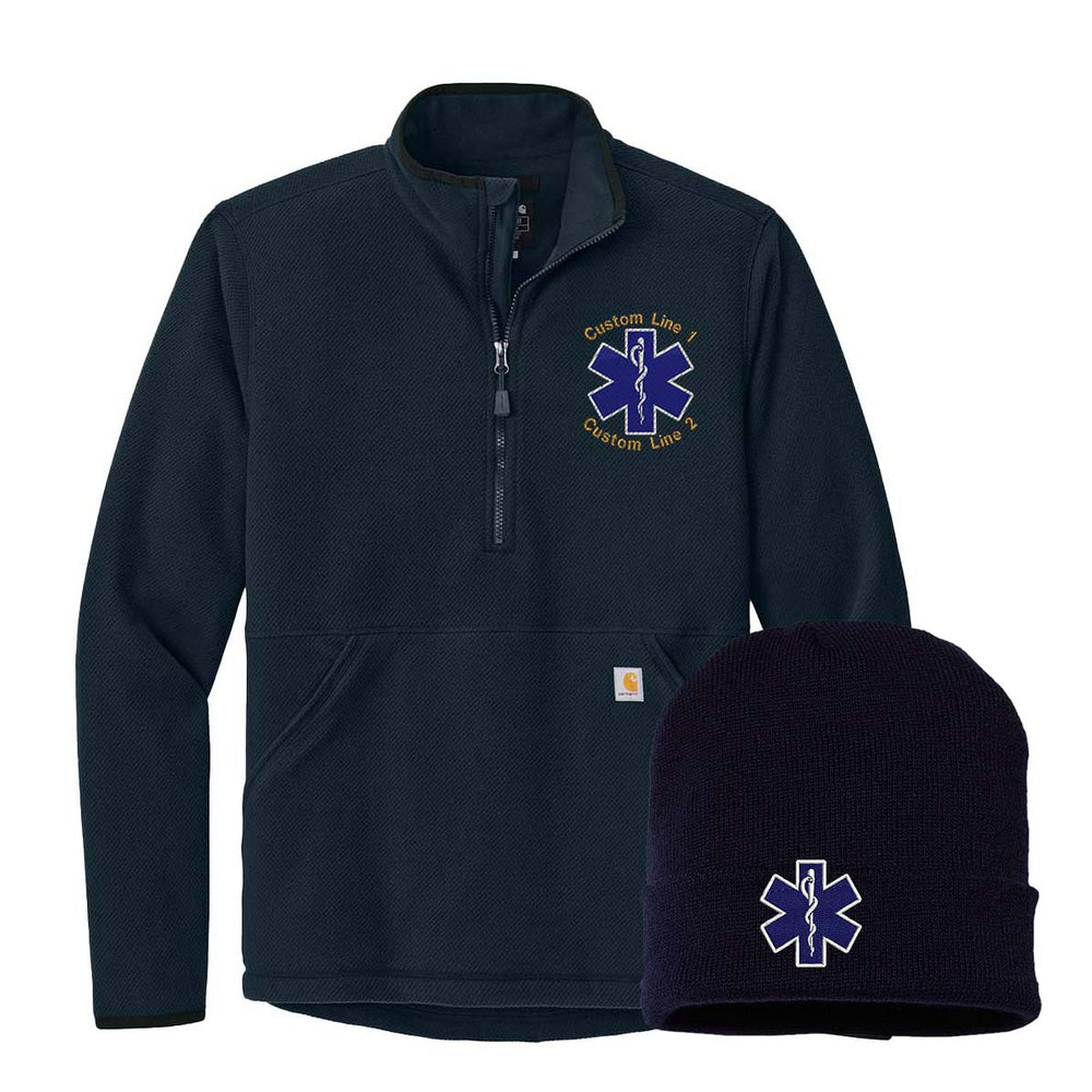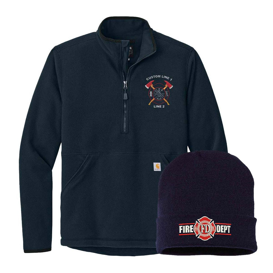 Take on the cold with the Carhartt® Textured 1/2-Zip Fleece Jacket & Beanie Bundle. Designed for warmth and comfort, this set is tough enough for the job and comfortable enough for everyday wear. A dependable choice for firefighters, first responders, and anyone who needs gear that lasts.