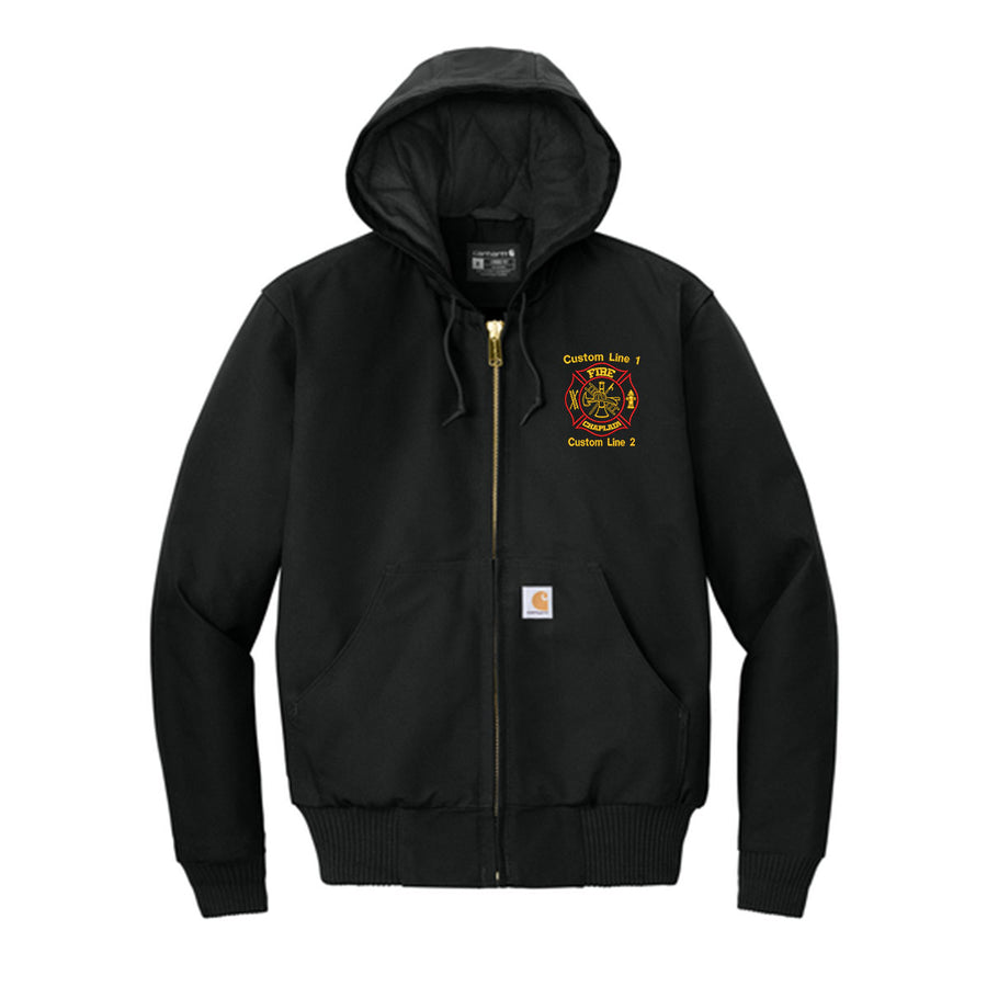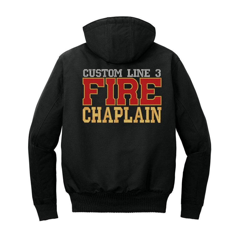 This Carhartt® Quilted-Flannel Jacket is built tough and customized for Fire Chaplains. The back features a bold red and gold Fire Chaplain design that represents honor, faith, and service. The left chest Maltese is stitched in matching red and gold, and you can personalize it with your name, station, or department. Custom text on both the front and back will match your selected thread color, keeping the embroidery sharp and consistent. A dependable firefighter jacket made for on or off duty wear.