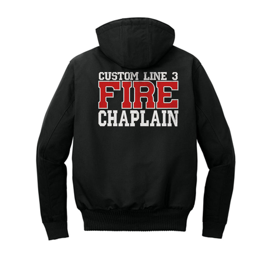 This Carhartt® Quilted-Flannel Jacket is built tough and customized for Fire Chaplains. The back features a bold red and white Fire Chaplain design that reflects honor, strength, and service. The left chest Maltese is stitched in matching red and white, and you can personalize it with your name, station, or department. Custom text on both the front and back will match your chosen thread color, keeping the embroidery sharp and consistent. A dependable firefighter jacket, perfect for on or off duty wear.