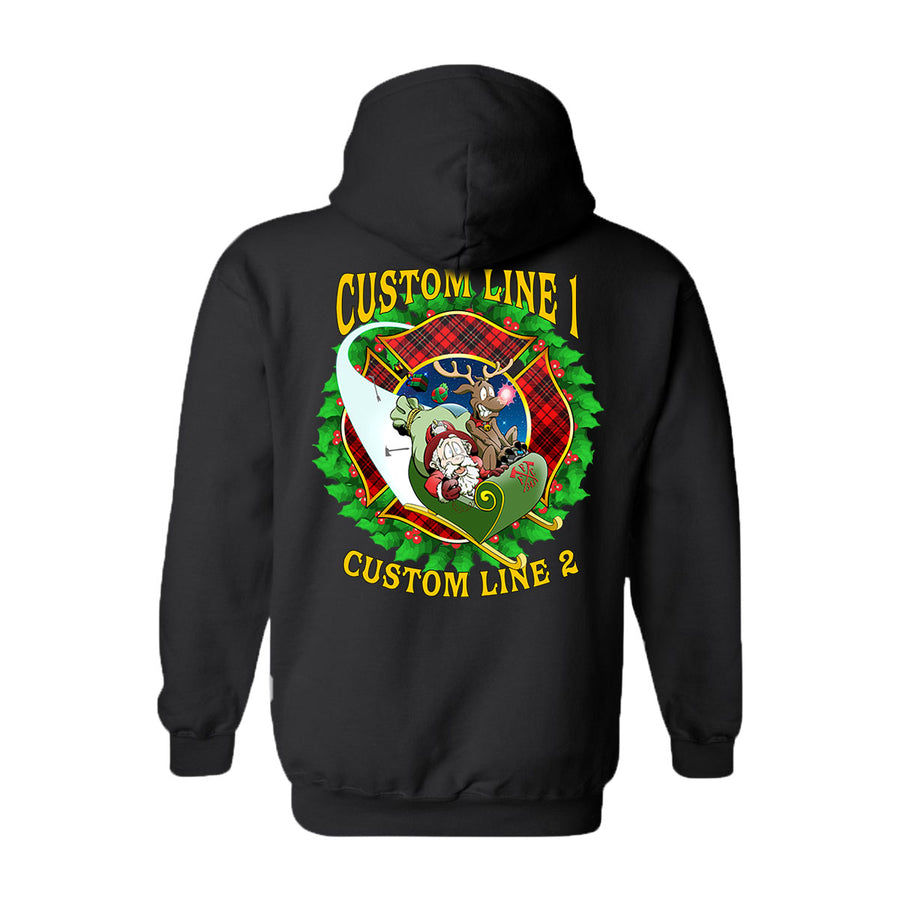 Customized Firefighter Christmas Wreath Plaid Maltese Premium Hoodie