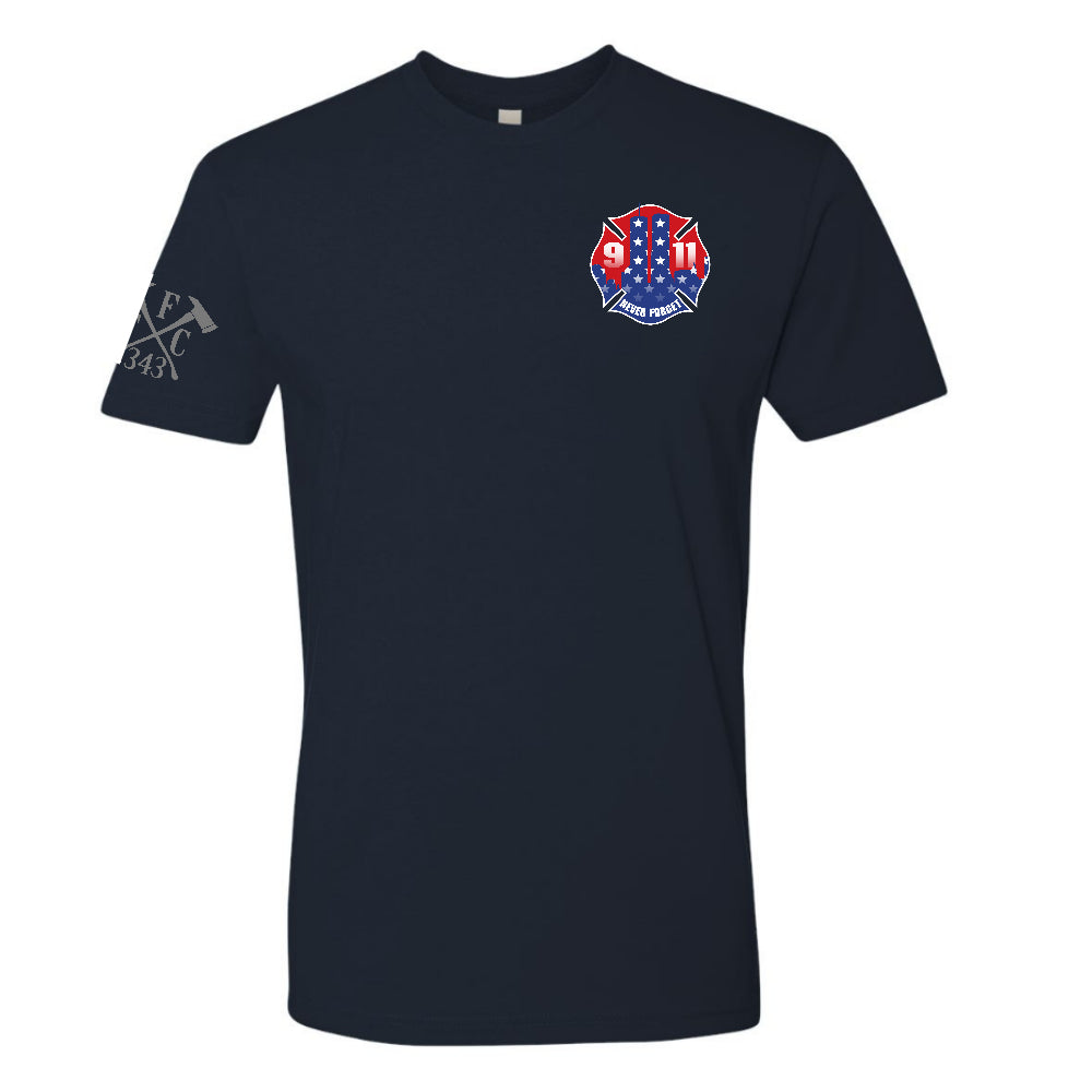 FFC 343 brand is an exclusive firefighter.com brand. The FFC 343 crossed ax logo is printed on the right sleeve.