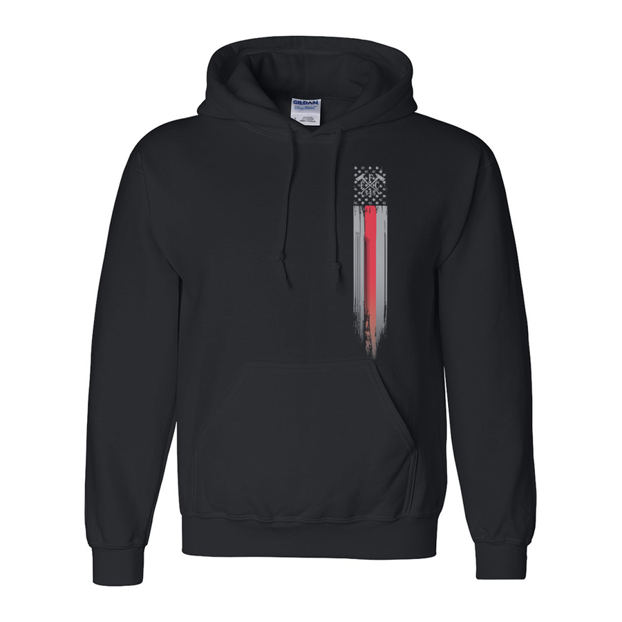 Exclusive Firefighter.com's FFC 343 Brand, the Thin Red Line Stars and Stripes Premium Hoodie is for the American Firefighter Patriot. If you love freedom and firefighting, you need this design for your off duty apparel collection. Left front chest grey distressed American Flag with the FFC 343 crossed axes within the stars and the subdued thin red line down the body, speaks a simple but profound message of dedication to this country and the firefighter mission.