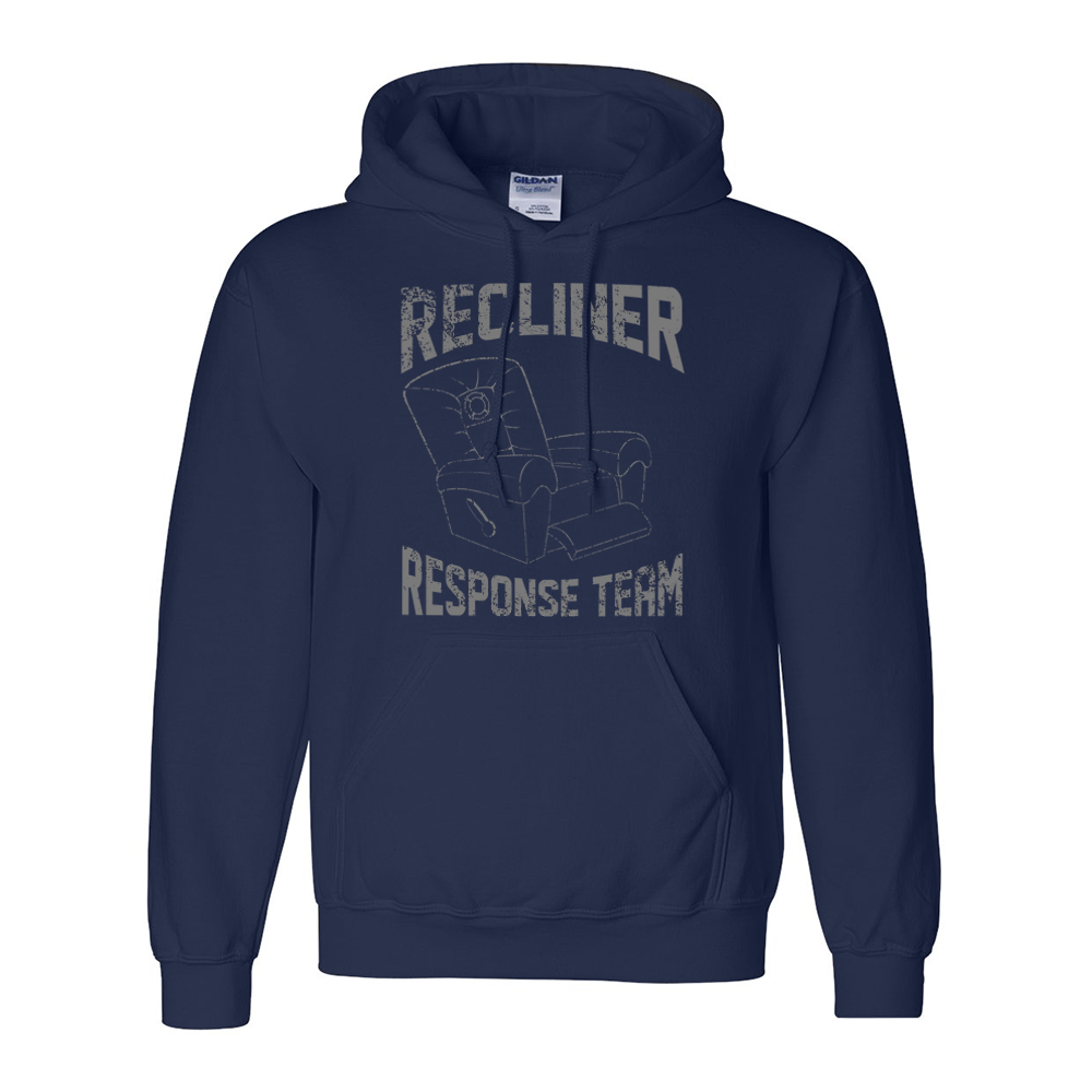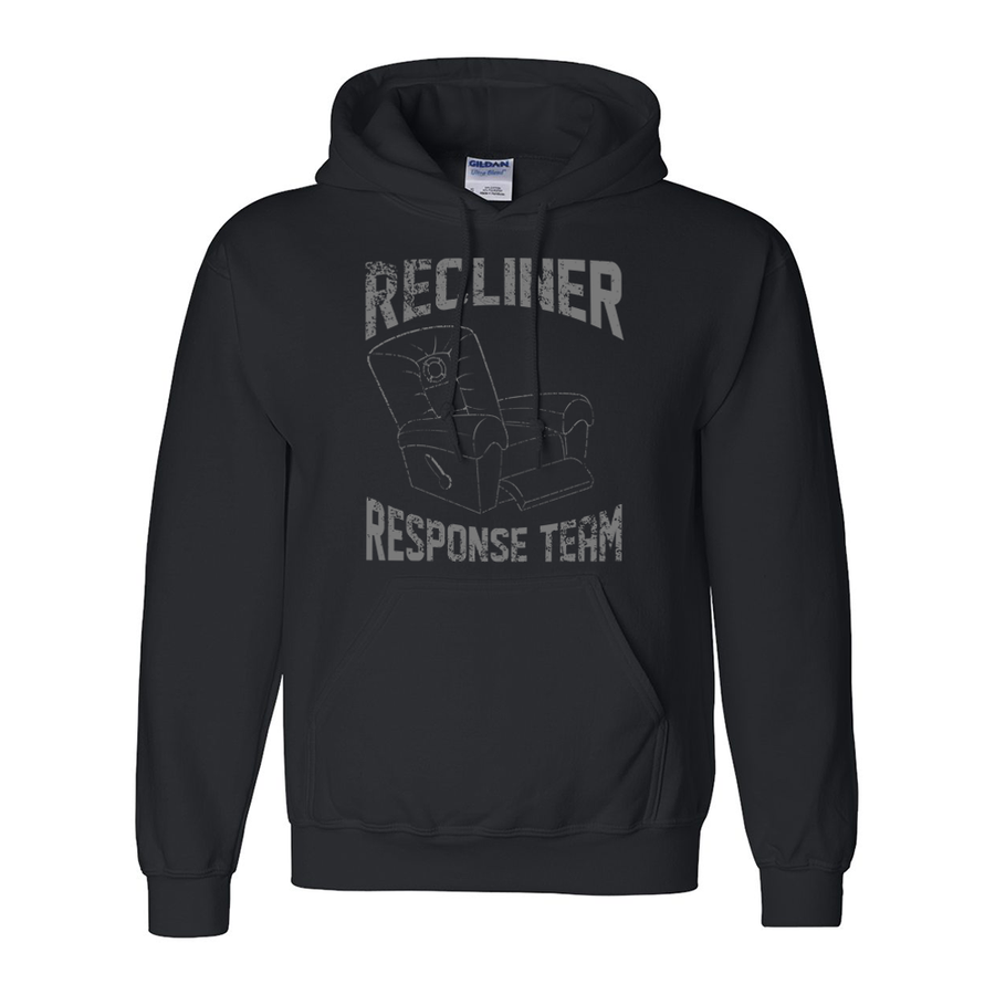 Lounging at the Fire Station has earned you a spot on the recliner response team. You earn it, might as well wear it proudly with this premium hoodie. Distressed print in light grey features a reclined back fire station recliner with the FD Maltese and RECLINER RESPONSE TEAM proudly printed around if and the FFC 343 crossed axes on the sleeve.