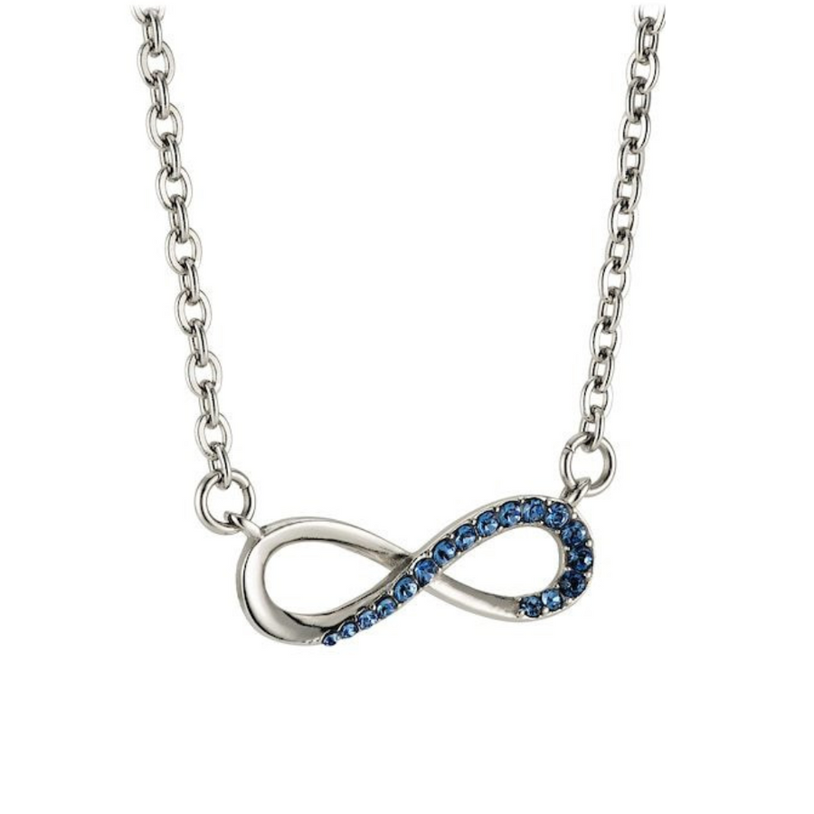 This infinity piece has a chain already attached to each end of the pendant. The total length of the necklace is 18.5 inches. The entire piece cleans easily with a polishing cloth.