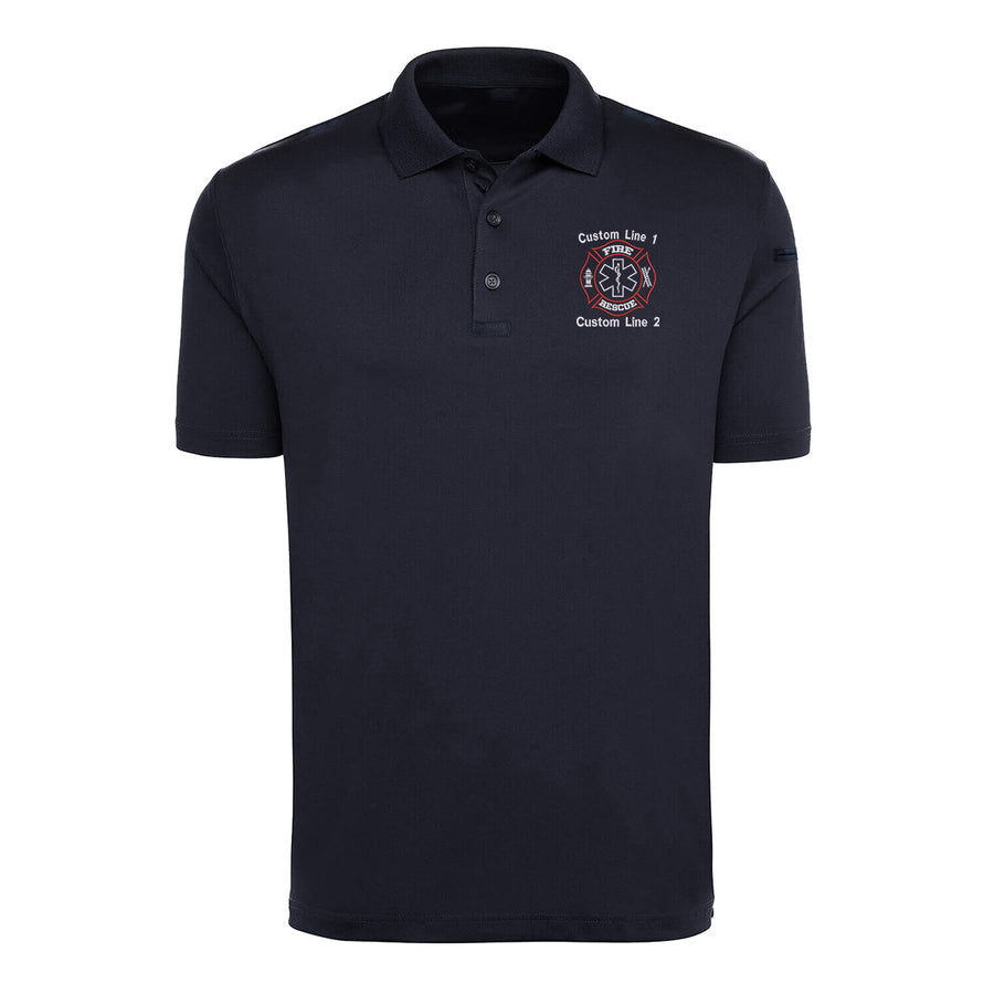 This Game Sportswear Cotton Tactical Polo is customized for Fire Rescue. The chest features bold Fire Rescue embroidery, with your choice of red and white or red and gold thread. You can also personalize it with your name, station, or department for a professional and custom look. Built for comfort and durability, this polo is perfect for both on and off duty wear.