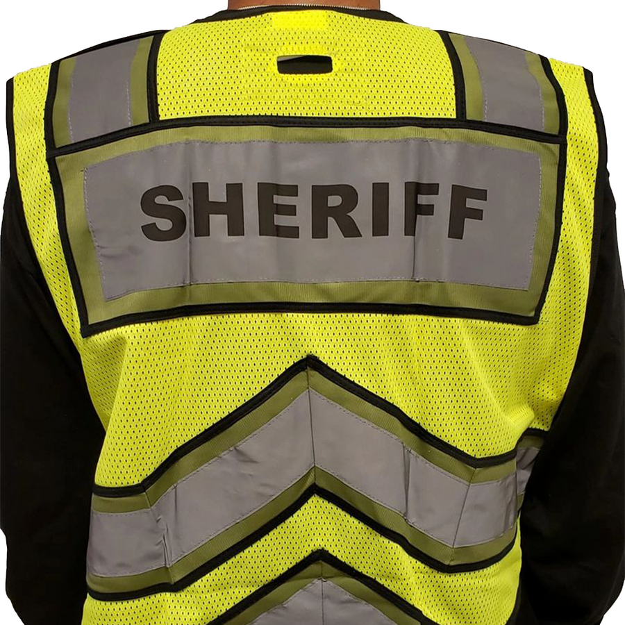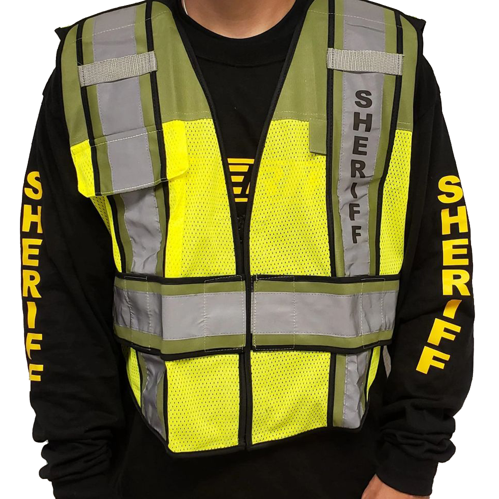 The OLIVE - SHERIFF vest meets the most current ANSI/ISEA 107-2015 standard. Class 2 Public Safety Vests are flying off the shelves. Designed for emergency responders. The double breakaway zipper allows the vest to breakaway from both sides of the zipper, making it a 6 Point Breakaway vest. The performance cut offers max comfort and allows access to rescue gear pockets or portable radio at the waistline. A Chevron reflective pattern on the back offers max visibility.