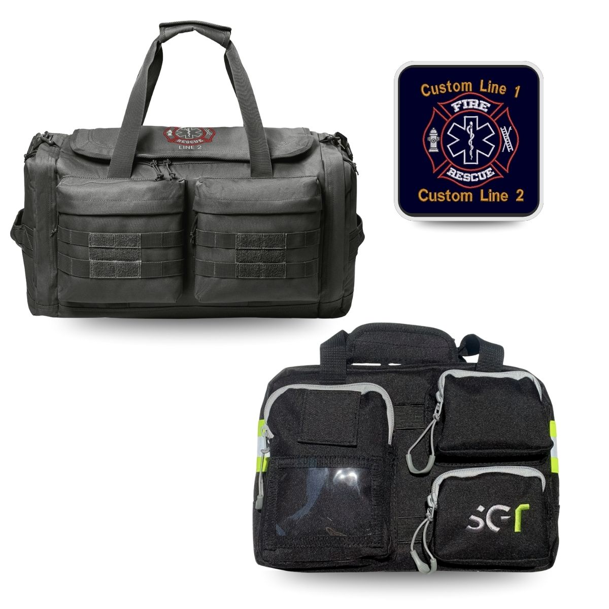 Gear up with the Customized Tactical Bag & Ready Bag Bundle, built tough for firefighters on and off duty. This bundle includes two durable bags made for organization, function, and pride in the fire service.